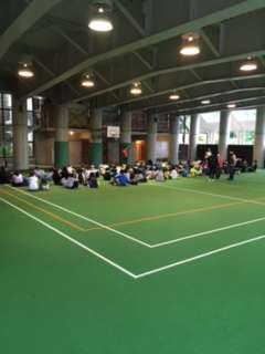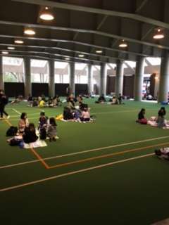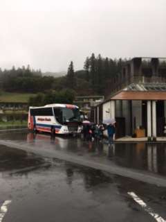 予定通りに、なかのビレジに着きました。こちらも雨模様ですが、雲の中のような霧に囲まれています。そして森の中の空気。体育館ほどの広さがある屋根付き広場で、昼食をとっています。