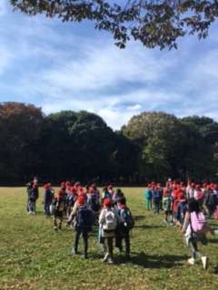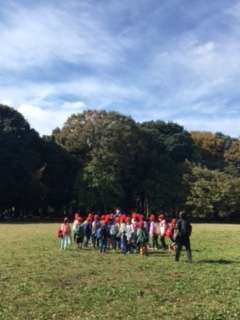 砧公園に着きました。青空のもと、これからお弁当を食べます。お天気に恵まれてよかったです。