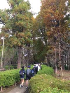 無事に羽根木公園に着きました。途中通った緑道では、近隣にお住まいの方の迷惑にならないように声を出さずに歩くこうというめあてがありましたが、足音と風の音が聞こえるくらい静かに歩いていました。先日1年生と同じルートを歩きましたが、当然のことながら格段の違いでした。これが6年生。成長した姿に誇りと感動を覚えます。到着時間も早かったです。