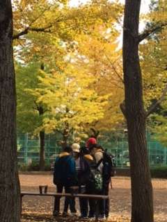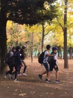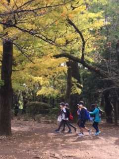 グループに分かれてオリエンテーリングを楽しんでいます。作戦会議をしたり、カードを見つけたと大声をあげたり。iPadを持っているところが今らしい。