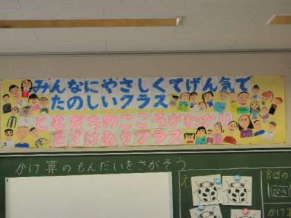 今日の授業は「かけ算のもんだいをさがそう」でした。授業の初めに、赤堤小「学習スタンダード」に基づき、机上・姿勢の確認から始まりました。