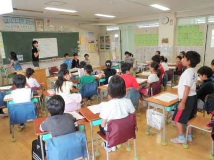 今日の議題は「みんな笑顔で長なわじょうたつ大作戦」でした。子どもたちは、事前にたくさんの作戦を考えてきたようで、活発な話し合いが行われました。話し合いの結果、「休み時間に週1回みんなで練習する」ことになりました。堀越先生が模造紙にみんなの意見を書いて貼ってありますので、自分たちの話し合いを思い出すことができます。