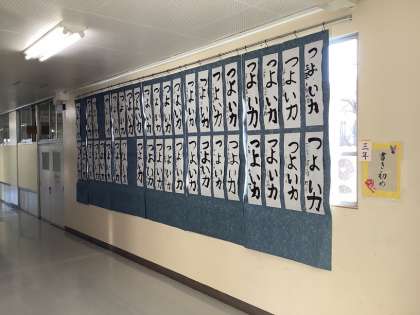 校内書写展が始まります。3年は毛筆で書いた初めての作品になります。作品鑑賞をしてから、自分のがんばって書いたところを伝えたり、友達のよいところを見つけたりして活動を振り返る予定です。