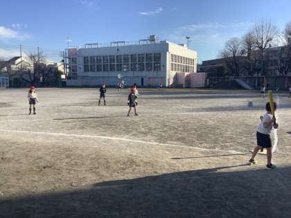 3年生の体育では、ティーボールに取り組んでいます。バットでボールを打つ、ボールを捕るという練習をして、基本的な動作を身に付けました。試合では、チームごとに作戦を立て活動をしています。