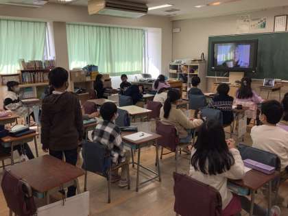 3年総合的な学習の時間では、学校にあるビオトープをよりよくするための調べ学習をしています。今日はオンライン授業にて、ビオトープギルドさんから今までの学習で出てきた疑問に答えてもらいました。今日教えていただいたことをまとめ学習に生かしていきます。