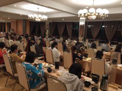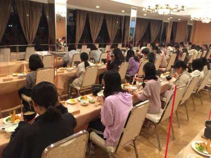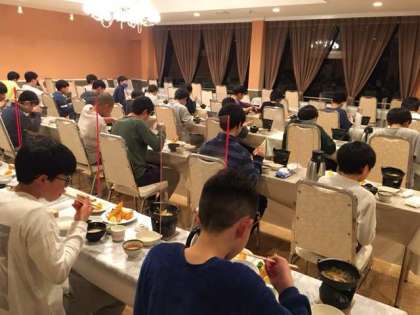 夕食の様子。どの子もよく食べています。さすがに中学生になる直前の6年生。成長期を感じます。黙食の約束も全員守っていて、とっても静かです。褒めてあげたい気持ちと、コロナさえなければ、という思いとがどうしても重なります。