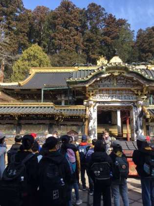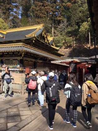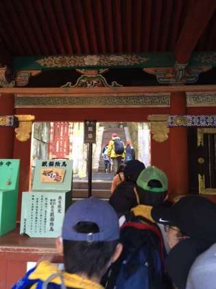 眠り猫の下をくぐって家康の墓へ。長い石段を登りました。みんな元気です。