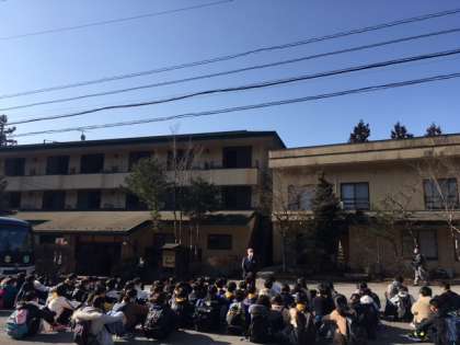 閉園式。お世話になった宿舎の方々に御礼を伝えました。6年生を乗せたバスは日光江戸村に向かっています。