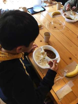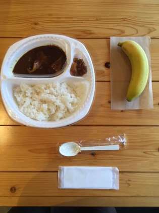 三日目の昼食。カレーを食べています。食事の後はバスに乗って帰路に着きます。