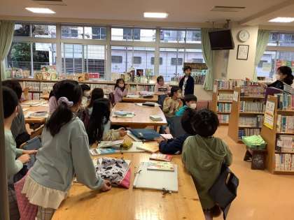 学期末を迎え、図書室での学習が終わりになりました。1年間でどれだけ本を読んだか、指導員さんから発表がありました。1年間のがんばりを認め、賞状をもらいました。指導員さんから学習内容に合わせて本の紹介があったり読み聞かせをしてもらったりすることで、充実した図書の活動ができています。