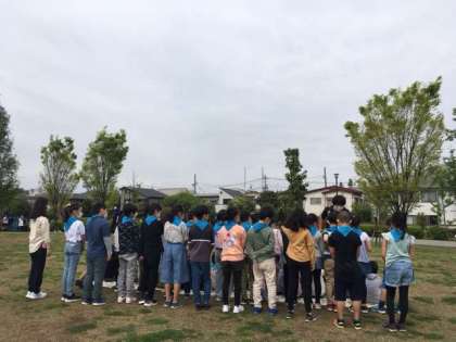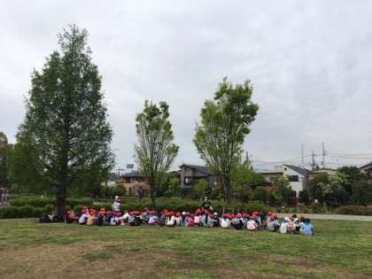 下高井戸おおぞら公園に着きました。曇り空ですが、歩くにはちょうど良い気温です。まずは集合写真を撮りました。みんな元気です。