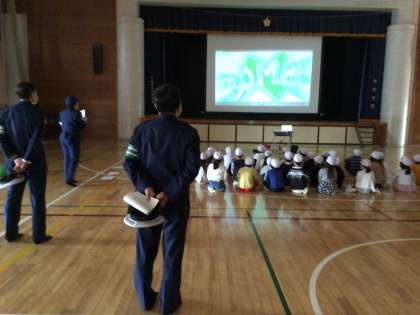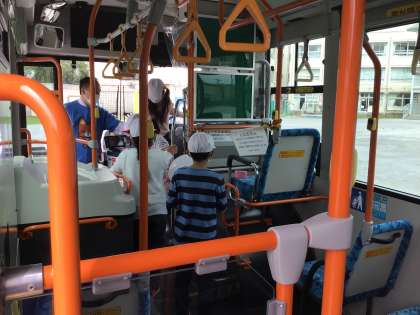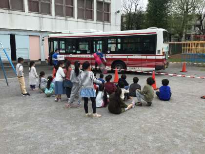 小田急バスさんと警察に来ていただき、安全について学習しました。小田急さんには、バスの内輪差や外輪差を見て確かめたり、バスに乗って、運転席から見えていない場所がどこかを見て知る活動を行っていただきました。警察からは動画を通して、歩道を渡る際の注意点について学びました。