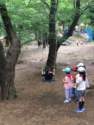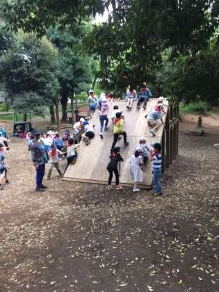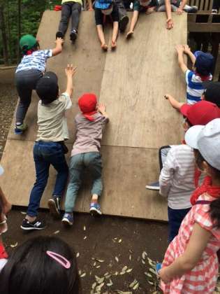 プレイパークで遊んでいます。ちょっとしたアドベンチャー。さながらインディジョーンズの一コマのようです。