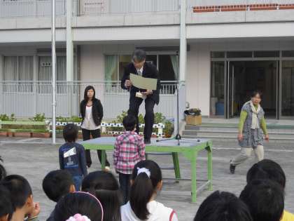 さわやかな秋晴れのもと、昨日、行われた第22回 世田谷児童作品展の表彰式で表彰された児童の表彰を行いました。世田谷児童作品展は、世田谷区と財団法人エム・オー・エ—美術・文化財団とMOA美術館世田谷児童作品展実行委員会が主催して行われました。また、文部科学省、外務省、厚生労働省、農林水産省、東京都教育委員会、世田谷区教育委員会等合計13の関係諸機関が後援しています。表彰式には、保坂展人世田谷区長をはじめ多くの来賓の皆様がご出席されて行われました。吉村実校長も出席し、入賞を祝いました。