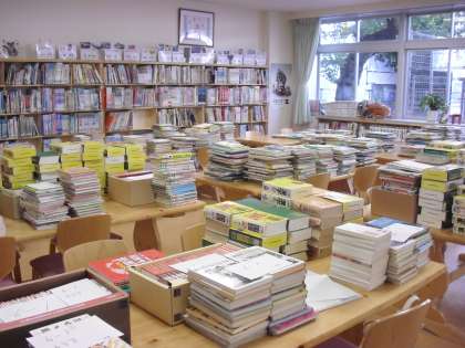 今日から学校の蔵書にバーコードラベルを付ける作業が始まりました。