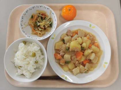 今日は旬の「グリンピース」を使って『グリンピースごはん』にしました。苦手な子も多いグリンピースですが、旬のものはこの時期しか味わえないので、季節の味を感じてほしいと思い作りました。