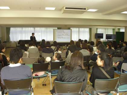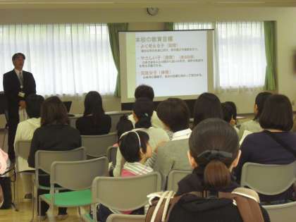 赤堤小学校の経営方針、教育活動について、吉村 実校長が説明しました。来年度入学予定の保護者の方をはじめとして、50名を超える方が、熱心に聞いてくださいました。