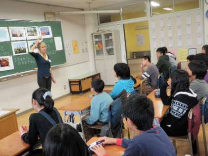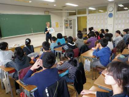 6年3組には、ロシアの女子学生が来てくださいました。ロシアの国の様子、挨拶、食べ物についてお話しくださいました。特にびっくりしたことは、季節によって寒暖の差がはっきりしていて、夏は半袖で過ごすほどだそうです。