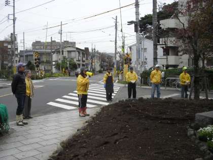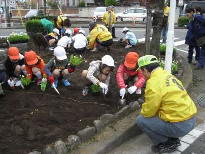 赤堤3丁目の世田谷線沿いの一角に、花植え活動を行いました。赤堤3丁目自治会の方々に植え方を教わりながら、チューリップの球根とノースポールの苗を植えました。この活動は30年程続いているそうで、世田谷区の公園緑地課北沢公園管理事務所、松沢まちづくりセンターとともに行っている活動だそうです。2年生一人一人が、地域の方々とともに、心をこめて一生懸命に花植え活動を行いました。