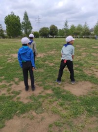 また、衣服のまま水中に落ちてしまったときには、なるべく動かないで浮かんで待つことが大切だと教わり、着ている衣服に空気を取り入れ浮く練習やペットボトルなど空気の入っているものにつかまって浮く練習をしました。