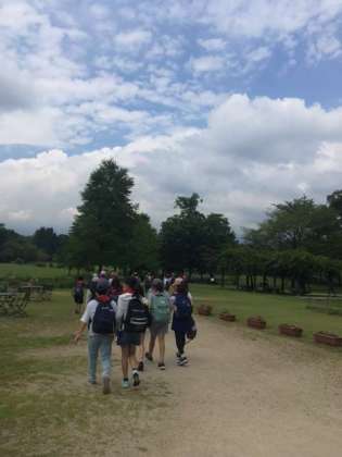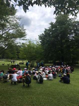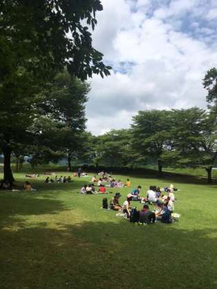日光だいや川公園に着きました。日差しが雲に隠れるようなちょうど良いお天気です。さっそくお弁当を食べました。
