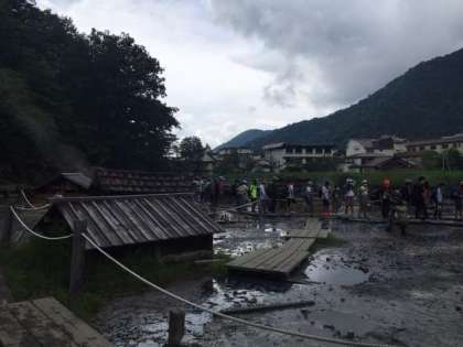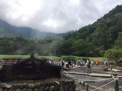 湯元の源泉に来ました。地面からお湯が沸いている。いい体験ができました。その1