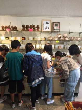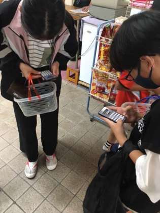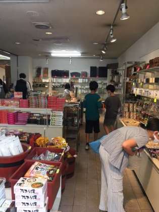 おみやげを買っています。小さなかごと電卓を持って「あーなやむー。」とか「予算オーバー。」とかいう声を漏らしながら買い物を楽しんでいます。その1