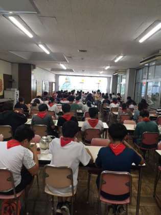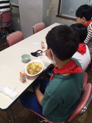 昼食場所に着きました。カレーライスを食べています。日光江戸村では雨に降られることなく楽しめました。この後、やや早めにこちらを出発することができそうです。あらためて、お知らせいたします。