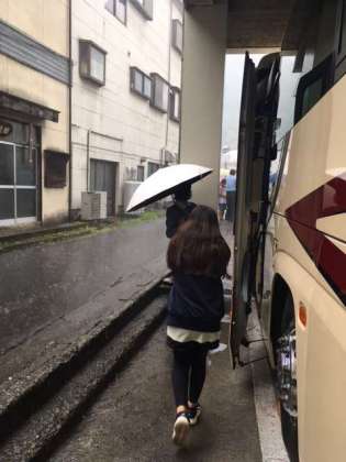 バスは昼食場所を12時18分に出発しました。帰路が順調であれば、14時40分前後に学校に到着する予定です。途中の通過地点を随時ホームページにてお知らせします。こちらは、現在急に土砂降りとなりました。ちょうどいい時に出発できました。