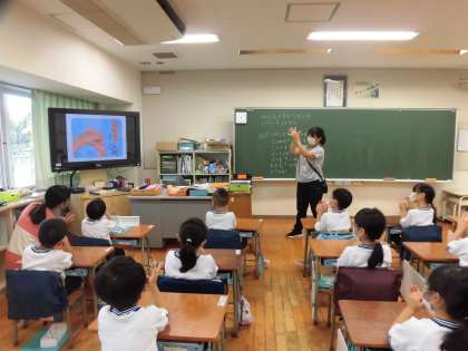 2学期の計測の際に、各クラスで養護教諭による保健指導を行いました。今日の低学年では、動画で歌に合わせて隅々まできれいになる手の洗い方を教えてもらいました。