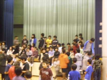 体育館で集会委員会のルール説明の後、「カード集めゲーム」を行いました。一人6枚の学年の数字の書いてあるカードをあらかじめもっていて、じゃんけんをして勝ったら、相手のカードがもらえるゲームです。全学年の数字のカードを集めることを目指しました。