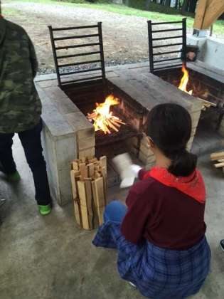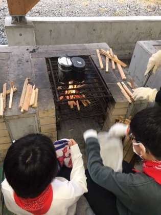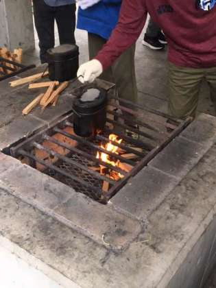 飯盒炊さん その4 かまどに火がつきました。