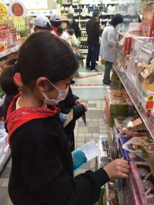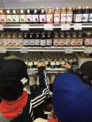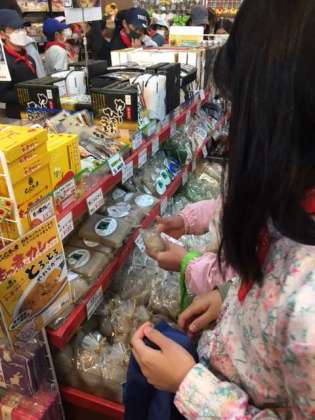 お楽しみのおみやげを買う時間。品物がたくさんあるのでよく考えて決めています。