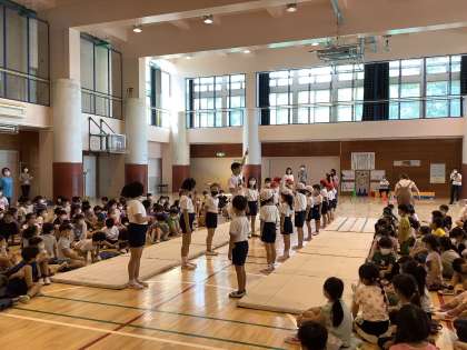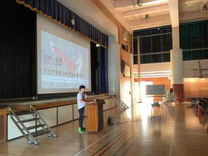 また、演技のデモンストレーションでは、美しい前転に始まり、ロンダートバク転バク宙などを組み合わせた技まで見せていただき体育館は熱気に包まれました。まさに「日本らしい美しい体操」でした。