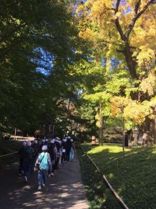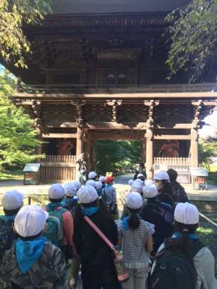九品仏浄眞寺に着きました。歴史のあるお寺。銀杏は樹齢300年。みんな説明をよく聞いています。
