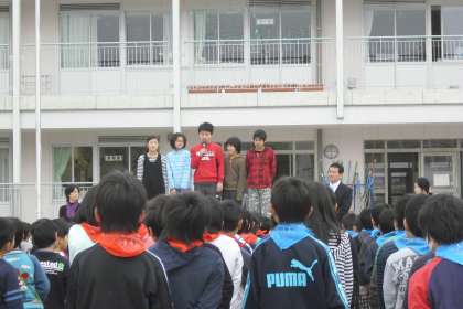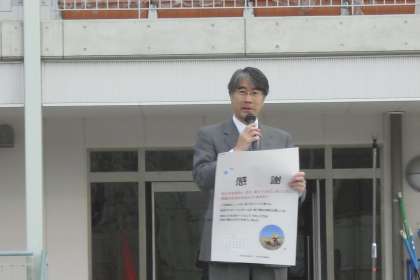 その後、今週のあいさつキャンペーンについて、たてわり2班の代表児童が、「元気よくあいさつをしよう」と呼びかけました。