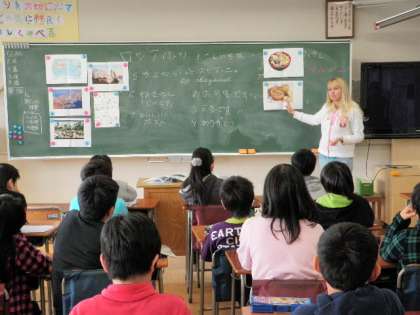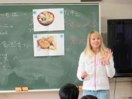 第2回は、中国の留学生に続きロシアの留学生でした。ロシア語の挨拶を教えていただき、出身地のウラジオストクの様子を写真で見せてくれました。ロシア料理の紹介では、子どもたちの知っているものもたくさんあり、盛り上がっていました。