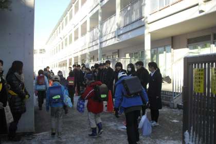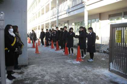 昨夜の雪が、朝も残っていて、凍った路面の中の登校となりました。転倒してけがをしないかと心配しておりましたが、幸いけがもなく登校でき、ほっといたしました。