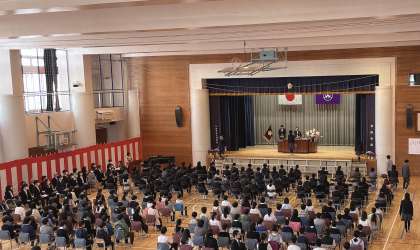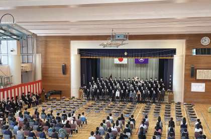 桜が咲き誇り、恵まれた天気の中、卒業生82名が旅立ちの時を迎えました。