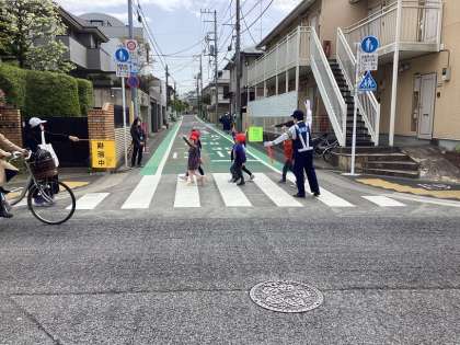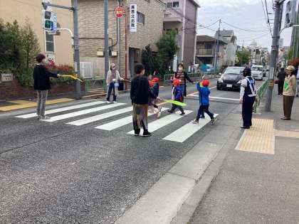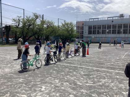 3年ぶりに校庭や歩道を使って交通安全教室が開催されました。PTAの皆様、警察の方のご協力のもと、1年生は道路の歩き方について、3年生は自転車の乗り方について学ぶことができました。