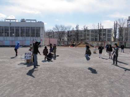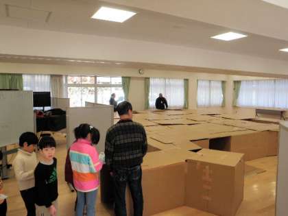 多目的室では、まちなかの会による「段ボール迷路」、校庭では、体育指導委員・ジュニアリーダーによる「スポーツチャンバラ」、教員・ジュニアリーダーによる「ダブルダッチ」、松沢地区委員会・消防団・赤コミ・赤ファイ・児童館・PTA等による「遊ぼうパン」ができます。どうぞ、ご家族でお出でください。