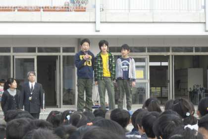 最後に、あいさつキャンペーンについて、たてわり班4〜6班の代表児童か、はっきりとあいさつしましょうと呼びかけました。