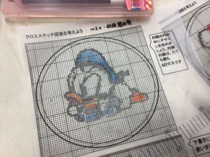 自分が刺繍をしたいデザインを考えて集中して丁寧にマスに色をぬっていました。