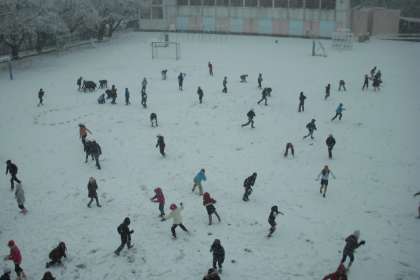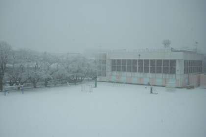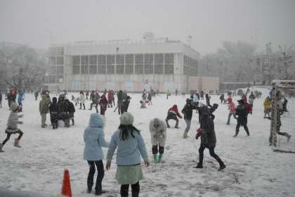 久しぶりに雪が積もりましたので、中休みは校庭で雪遊びをしました。校庭には、雪だるまがたくさんできました。