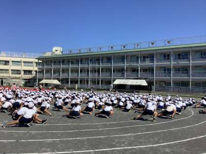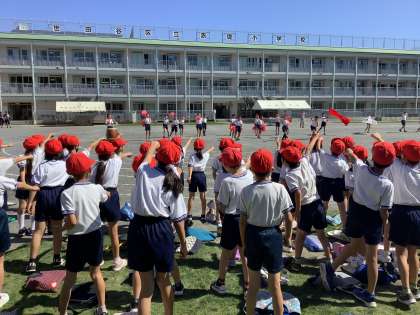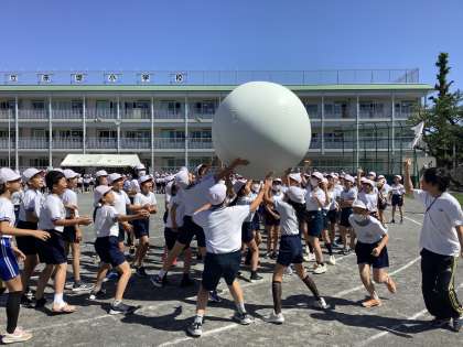 運動会まであと4日。全校で、応援と大玉送りの練習を行いました。