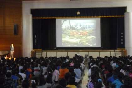 代表委員会が、東日本大震災のことを調べて、避難所の様子や子どもたちの様子について発表しました。東日本大震災のことを忘れないで、自分たちのできることとして、「募金をしよう」と呼びかけました。そして、3月2日、5日、6日に募金活動をするので、協力してほしいと話しました。