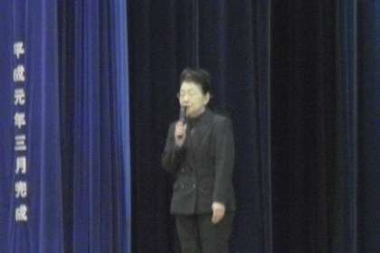 その後、3月5日から出産休暇に入る2年3組担任の小陽聖華教諭の後任として、我妻久美子教諭の紹介をしました。
