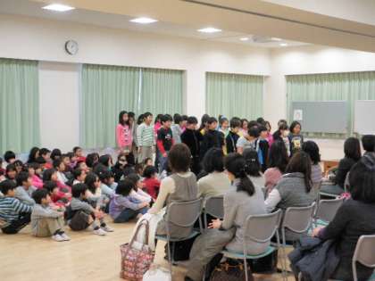 「高学年に向けてステップアップしよう」ということで、子どもたち一人一人が「将来の夢」「高学年の目標」を発表しました。会の終わりには、なりたい自分に近付けるように、自分たちにエールを送る意味を込めて、「YELL」の歌を披露しました。子どもたちの来年度の活躍がとても楽しみです。