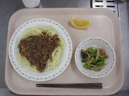 <ジャージャー麺・野菜のごまだれかけ・はっさく・牛乳>