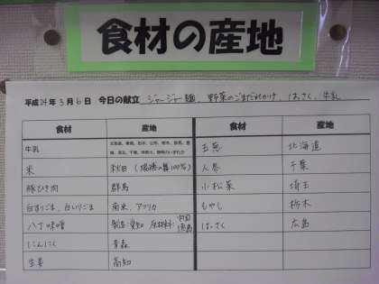 今日は、6年生のリクエストにもあがっていたジャージャー麺でした。ジャージャー麺はちょっと辛味があり、八丁みそを使っています。江戸時代からあるという八丁みそは、愛知県の岡崎市で作られたものです。原材料は大豆と食塩のみです。給食では、八丁みそと赤みそを合わせて入れています。今日の広島県産のはっさくは、甘くておいしいはっさくでした。